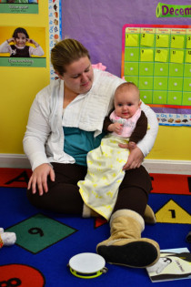 Naptime: Infants and toddlers bring naptime comforts and crib or cot sheets. These may be left with us and taken home on Fridays for washing. The teachers play soft music, cuddle, and nurture and rub backs as the precious darlings drift off to sleep. As children awake according to their own needs, we greet them and change diapers.